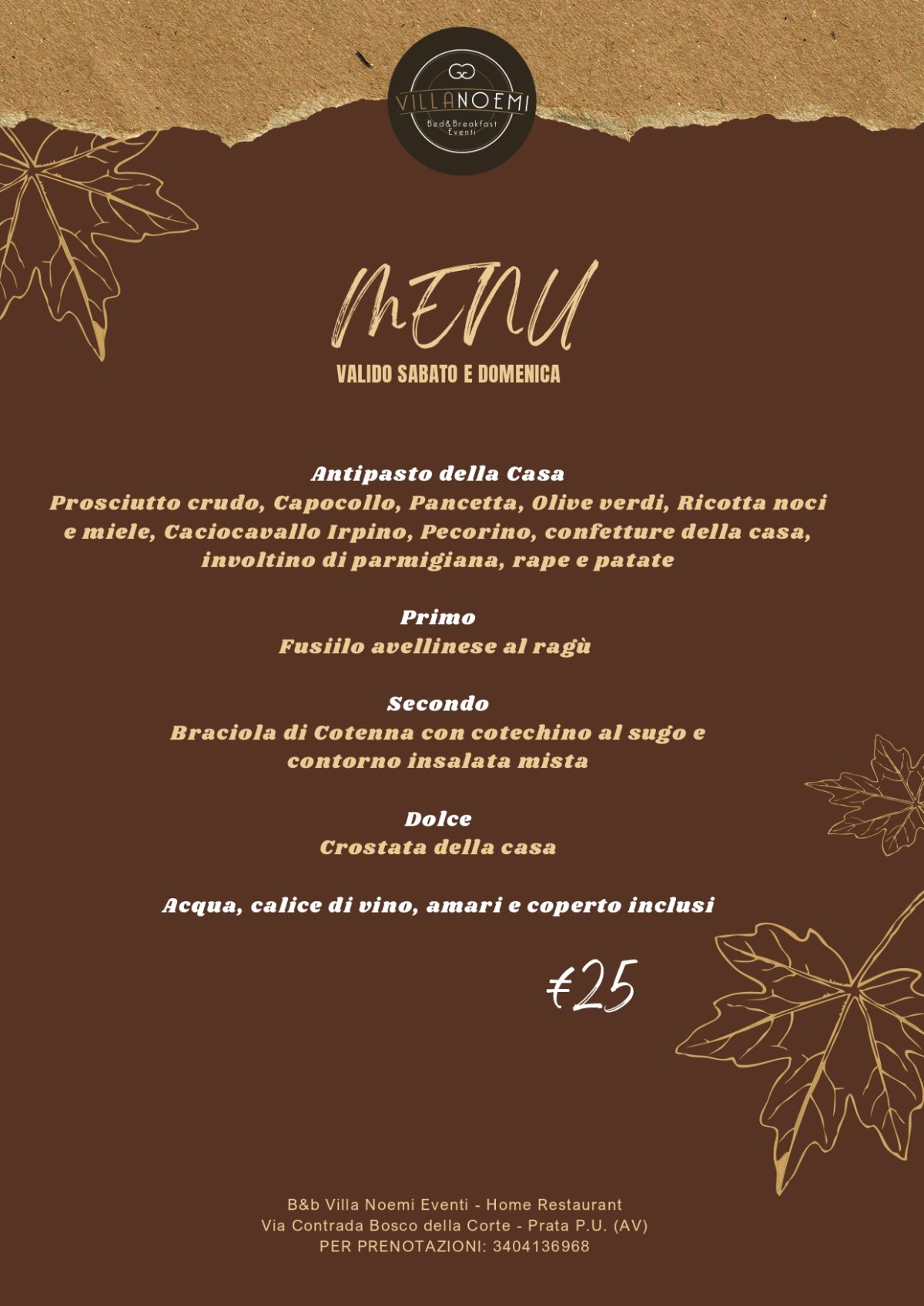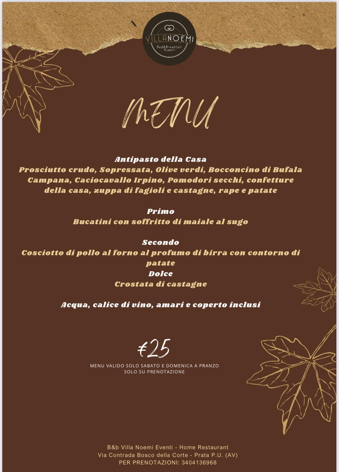 Menu prezzo fisso valido per i giorni 25-26.10.2025